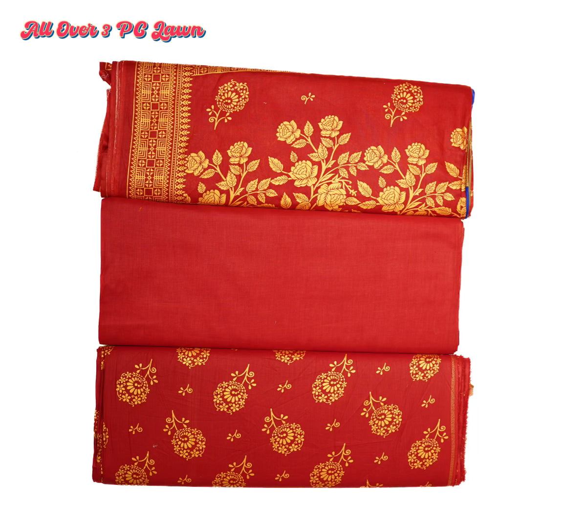 Elegant 3-piece suit with a beautifully printed dupatta (2.5 meters), all-over printed shirt front and back (2.5 meters), and a plain color-matched trouser (2.5 meters). Crafted from fine-quality fabric for a graceful and stylish look.